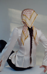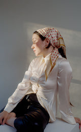 Made of 12mm 100% silk satin. Each scarf is printed and hand sewn by a small family run factory in Turkey.