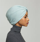 *True color is reflected in the turban product image. When worn, depending on how light hits the fabric, color can vary from seafoam to skyblue