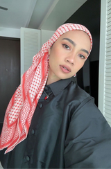 Large Silk/Cotton Palestine Kefiyyah Scarf (Red) 40"x40"
