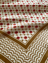 100% Silk Palestine Poppyseed Kefiyyah Scarf (Gold) 35"x35"