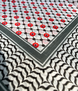Large Silk/Cotton Palestine Kefiyyah Scarf (Black Poppy) 40"x40"